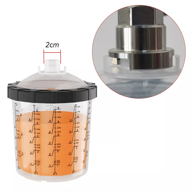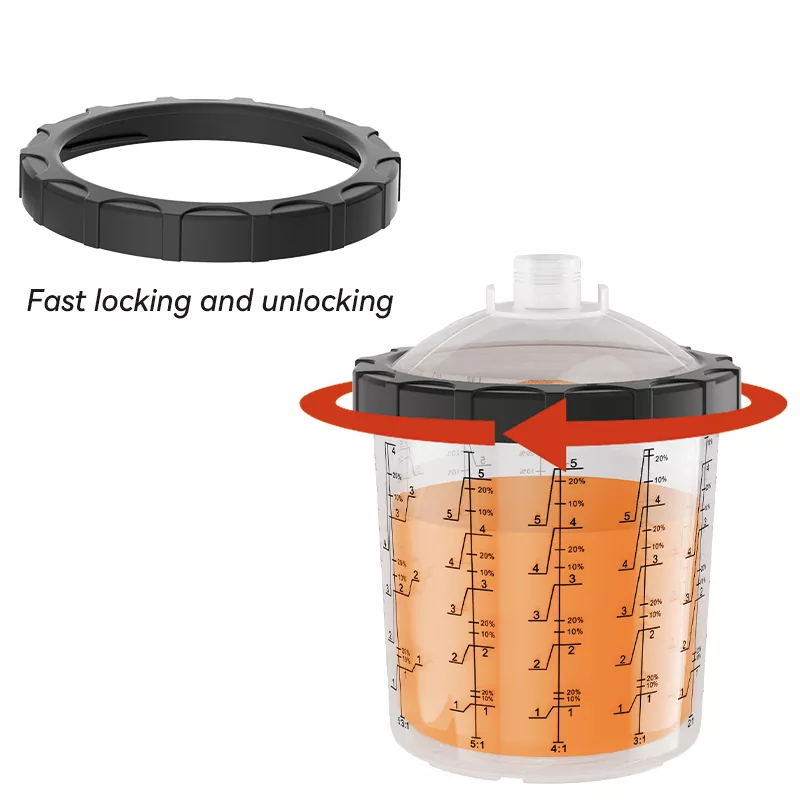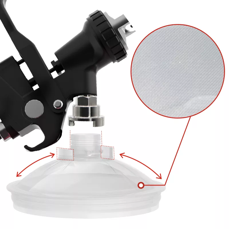 400ML స్పీడీ పెయింట్ సిస్టమ్ 2.0 అనేది కొత్తగా అభివృద్ధి చేయబడిన పేటెంట్ ఉత్పత్తి. గైడ్ ఫెన్స్కు ధన్యవాదాలు, ఇది కప్ను స్ప్రే గన్కు కనెక్ట్ చేయడానికి గడిపిన సమయాన్ని 50% కంటే ఎక్కువ ఆదా చేస్తుంది, చిత్రకారుడి నిర్లక్ష్యం వల్ల పెయింట్ లీకేజీని నివారిస్తుంది. లోపలి కప్పు శీఘ్ర భర్తీకి మద్దతు ఇస్తుంది, పరిష్కారంతో పెయింట్ను కడగడానికి సమయం మరియు ఖర్చును మరింత తగ్గిస్తుంది. విస్తరించిన నాజిల్ మరింత సమానమైన పెయింట్ పంపిణీని నిర్ధారిస్తుంది, ఫలితంగా లోపలి కప్పులో పెయింట్ అవశేషాలు చాలా తక్కువగా ఉంటాయి మరియు పెయింట్ వినియోగాన్ని గణనీయంగా మెరుగుపరుస్తాయి.
