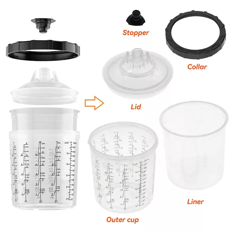 600 ఎంఎల్ పునర్వినియోగపరచలేని పెయింట్ కప్ సిస్టమ్ 1.0