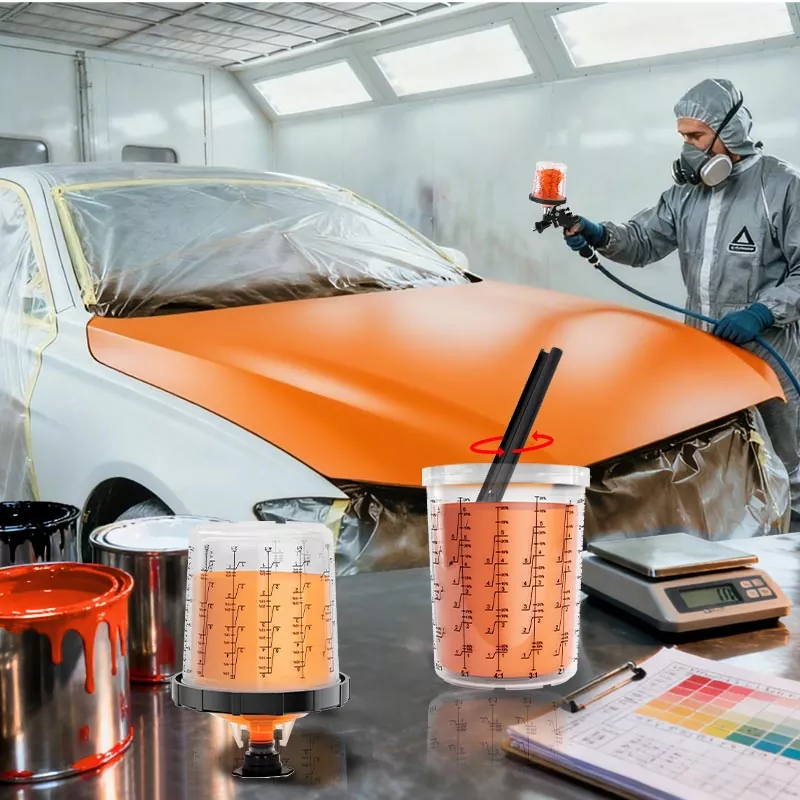 పునర్వినియోగపరచలేని పెయింట్ కప్ సిస్టమ్ ఒక యూనిట్లో మిక్సింగ్, ఫిల్టరింగ్, స్ప్రేయింగ్ మరియు స్టోరేజ్ ఫంక్షన్లను కలపండి. ఇది ప్రీ-పెయింట్ తయారీని సరళీకృతం చేయడమే కాక, కప్పులు మరియు కాగితపు ఫన్నెల్లను కలపడం యొక్క ఖర్చును కూడా ఆదా చేస్తుంది, ఇది తయారీ సమయాన్ని ఆదా చేయడానికి మరియు స్ప్రే చేసే సామర్థ్యాన్ని మెరుగుపరచడానికి సరైన ఎంపికగా మారుతుంది.