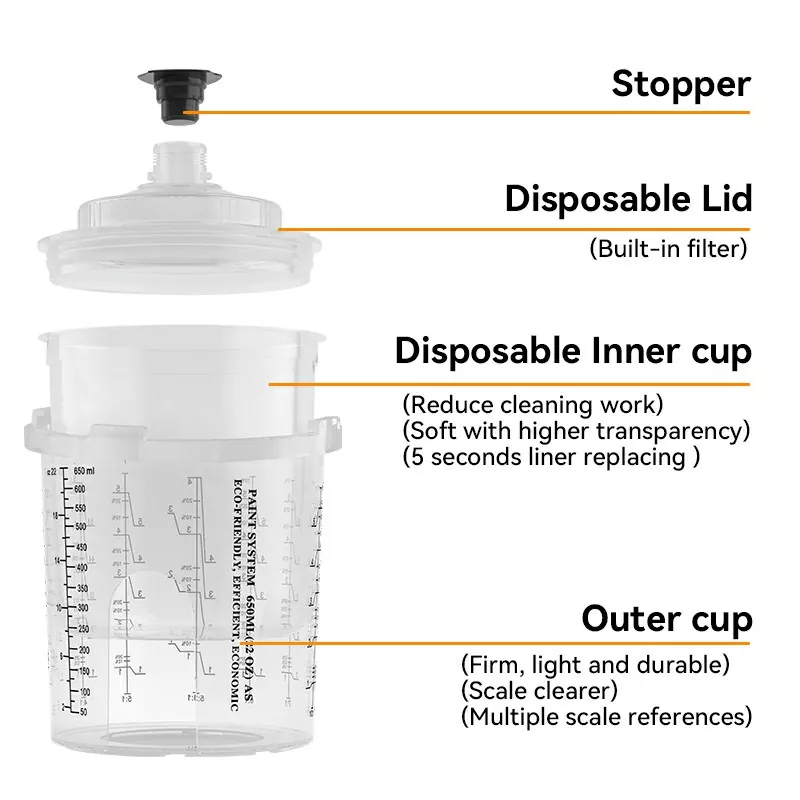 Pecial ప్రత్యేక కాలర్ అవసరం లేదు the పునర్వినియోగపరచలేని పెయింట్ కప్పును పనికిరానిదిగా మార్చే లాస్ట్ కాలర్ అయ్యే అవకాశాన్ని మెరుగుపరుస్తుంది.
