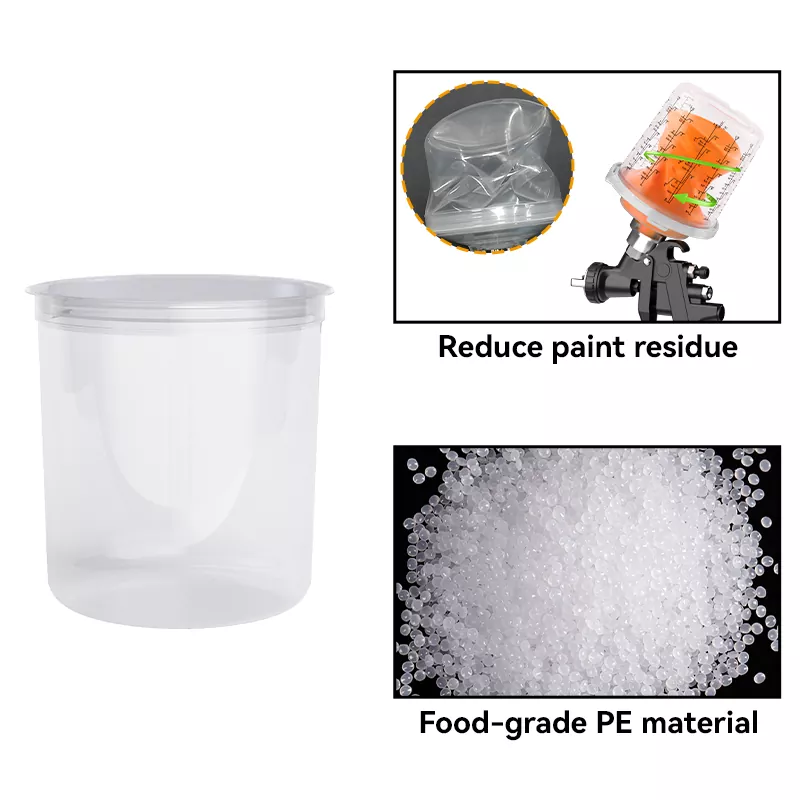 ఐస్పాట్ పునర్వినియోగపరచలేని స్ప్రే గన్ కప్పులు ఉపయోగించిన తర్వాత నేరుగా లైనర్ను భర్తీ చేయడానికి మిమ్మల్ని అనుమతిస్తాయి, శుభ్రపరిచే అవసరాన్ని తొలగిస్తాయి. ఇది శుభ్రపరిచే ఏజెంట్ ఖర్చులను తగ్గించడమే కాక, స్ప్రేయర్స్ సమయాన్ని ఆదా చేస్తుంది, స్ప్రే సామర్థ్యాన్ని మెరుగుపరుస్తుంది. సాంప్రదాయిక మెటల్ స్ప్రే కప్పుల అసంపూర్ణ శుభ్రపరచకుండా అవశేష పెయింట్ అవశేషాల వల్ల కలిగే రంగు మార్పును అందించలేని స్ప్రే కప్పులు కూడా నివారించవచ్చు. పెర్ల్ మరియు మెటాలిక్ పెయింట్స్ వంటి హై-ఎండ్ ఫినిషింగ్లను పిచికారీ చేయడానికి పునర్వినియోగపరచలేని స్ప్రే కప్పులు ప్రత్యేకంగా అనుకూలంగా ఉంటాయి, ఇవి హై-ఎండ్ ఆటోమోటివ్ రిఫైనింగ్ కోసం సరైన ఎంపికగా మారుతాయి.