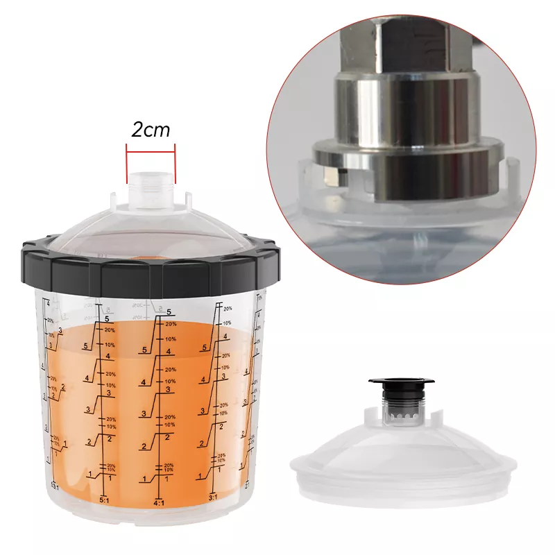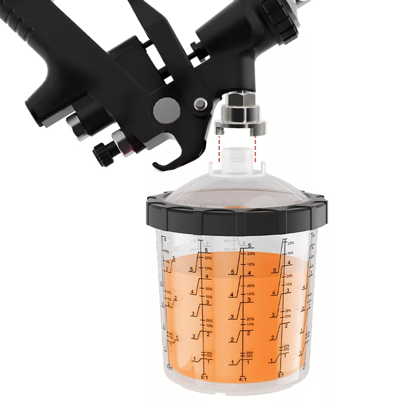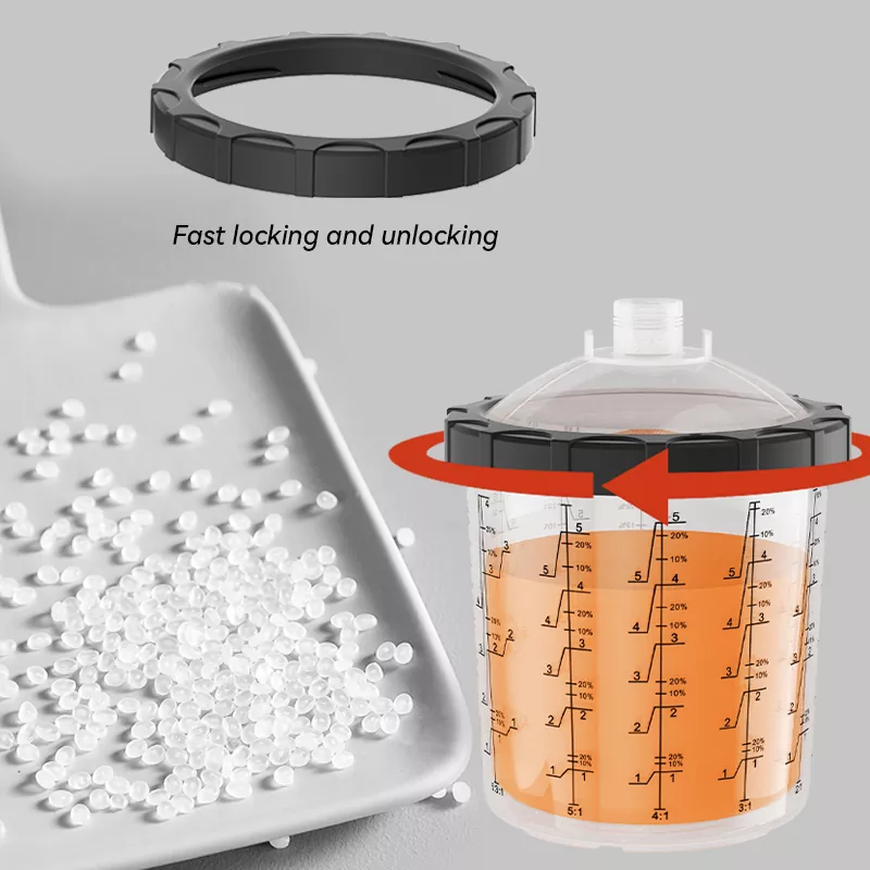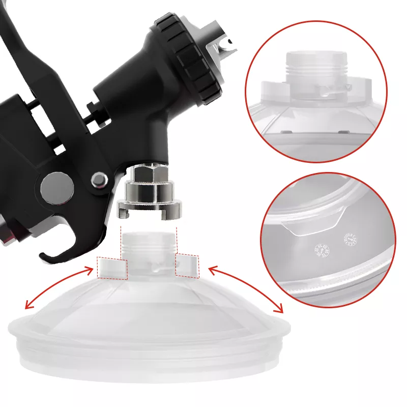 850ML స్పీడీ పెయింట్ సిస్టమ్ 2.0 ప్రధానంగా 5 భాగాలను కలిగి ఉంటుంది: ప్లగ్, మూత, కాలర్, లైనర్ మరియు ఔటర్ కప్. వాటిలో, లోపలి భాగం PE తో తయారు చేయబడింది తప్ప, మిగిలినవి ప్రధానంగా PPతో తయారు చేయబడ్డాయి. లైనర్ చాలా మృదువైనది మరియు తీయడం మరియు భర్తీ చేయడం సులభం; ఇతర భాగాలు ఘనమైనవి మరియు చాలా మన్నికైనవి. పునర్వినియోగపరచలేని పెయింట్ కప్పు వ్యవస్థ యొక్క ఆవిర్భావం సాంప్రదాయిక గురుత్వాకర్షణ ఫీడ్ను సంపూర్ణంగా భర్తీ చేయగలదు, ఇది వాషింగ్ ఖర్చును తగ్గించడమే కాకుండా, పెయింట్ యొక్క వినియోగ రేటును పెంచుతుంది, తద్వారా ఖర్చులను ఆదా చేస్తుంది. ఇంకా ఏమిటంటే, కప్పు వ్యవస్థను శుభ్రం చేయవలసిన అవసరం లేదు కాబట్టి, పెయింటర్లు టాక్సిక్ పెయింట్తో ప్రత్యక్ష సంబంధాన్ని నివారిస్తారు, తద్వారా వారి ఆరోగ్యం సురక్షితం అవుతుంది. అటువంటి పర్యావరణ అనుకూలమైన మరియు సమర్థవంతమైన ఉత్పత్తిని అభివృద్ధి చేయడం మరియు ఉత్పత్తి చేయడం అనేది Aspaint చేస్తుంది.