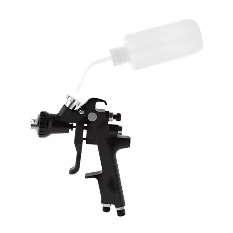 స్ప్రే గన్ క్లీనింగ్ బాటిల్ యొక్క ప్రత్యేకమైన వంగిన నాజిల్ స్ప్రే గన్ లోపల లోతుగా ఉన్న అంతరాలలో అవశేష పెయింట్ను త్వరగా ఫ్లష్ చేస్తుంది, ఇది పెయింట్ ఎండబెట్టడం వల్ల కలిగే అవరోధాన్ని సమర్థవంతంగా నిరోధించగలదు, స్ప్రే గన్ యొక్క సేవా జీవితాన్ని పొడిగిస్తుంది మరియు శుభ్రపరచడానికి స్ప్రే గన్ విడదీయడానికి సమయాన్ని తగ్గిస్తుంది.